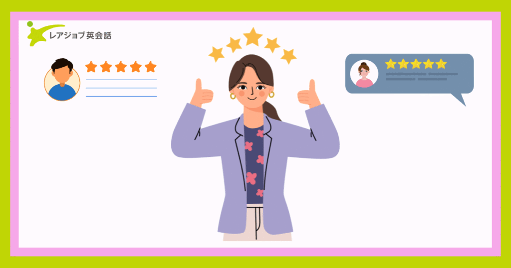 私もレアジョブおすすめできるし、実際に口コミ調査でも全体的に評判が良いよ!